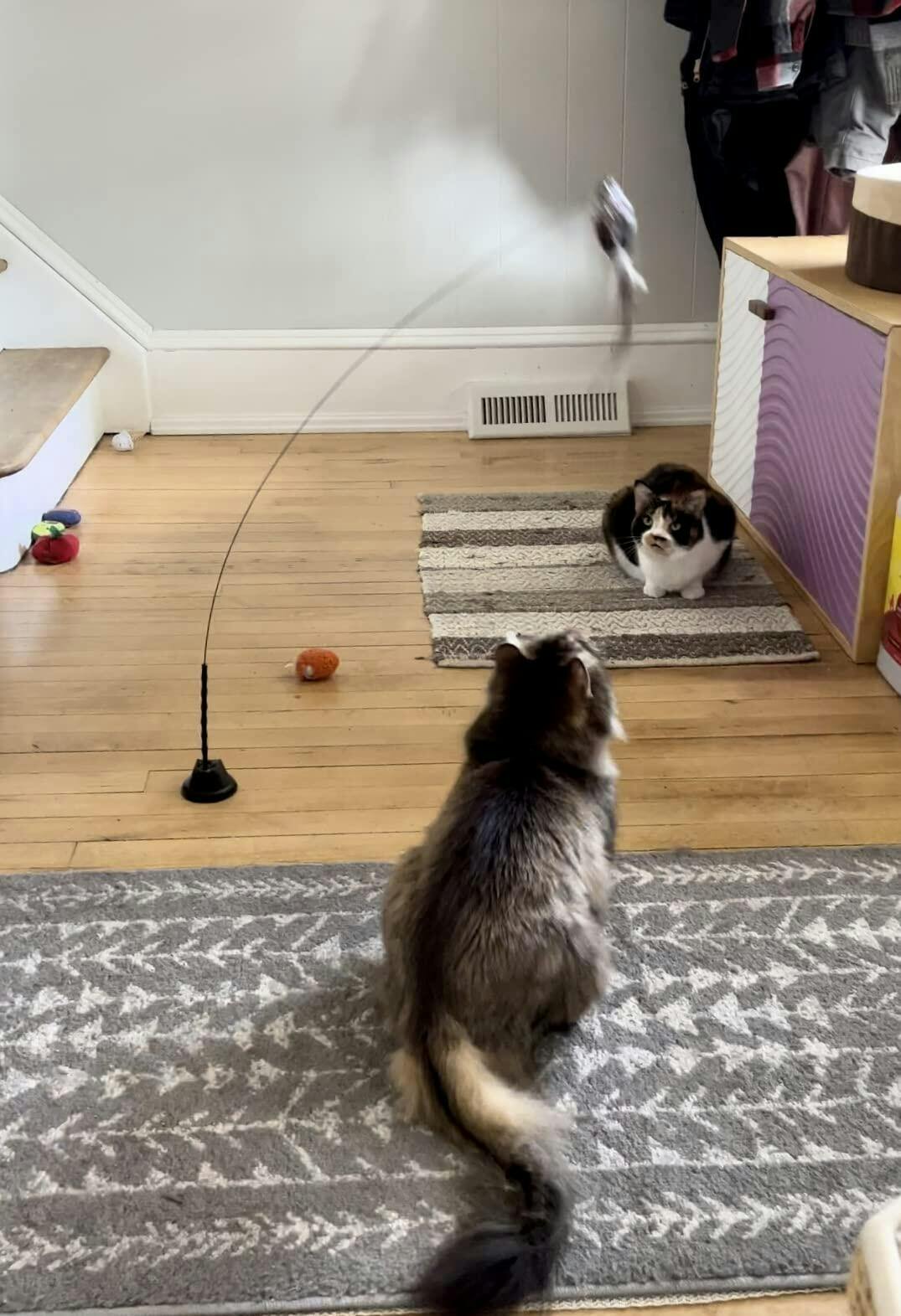 Said their cats seemed calmer and more relaxed after regular bird-chasing play.