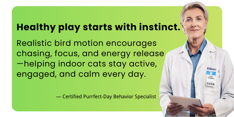Realistic bird-like movement encourages cats to chase, jump, and stay mentally engaged—helping support healthy daily activity and natural hunting behavior indoors.