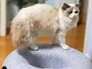 Our Peekaboo Cave is crafted from premium, high-density compressed felt, molded into a sleek, durable structure that maintains its shape. The result? A soft, breathable, and cozy hideaway where your cat can nap, snuggle, or play in total comfort.