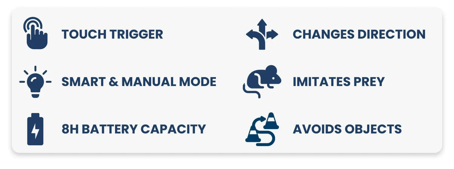 New! 2 Speed Modes: Customize the excitement! Choose between a playful 'Slow' pace or a thrilling 'Fast' speed for both Smart and Manual modes.
