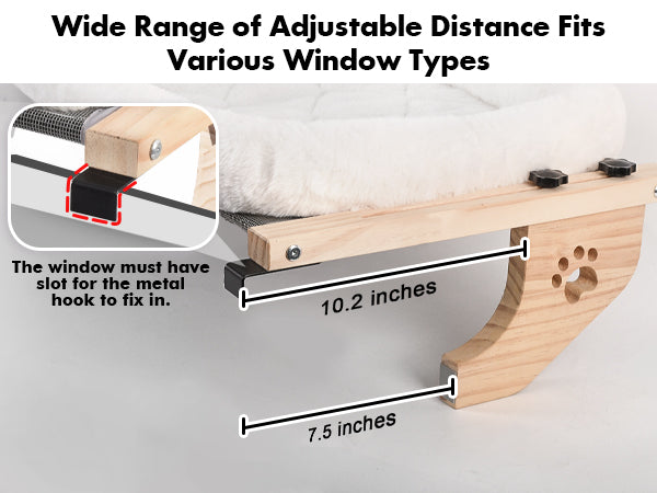 This perch features an adjustable support system that fits a wide range of window sill thicknesses. As long as your window has a small slot or gap for the metal hook, it can be securely installed.